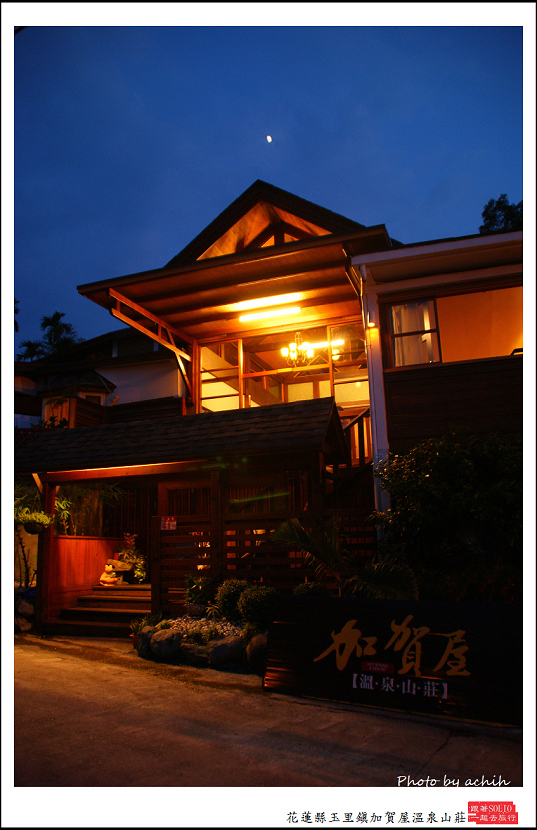 六十石山對於居住北台灣的我真的很遙遠,單趟車程即使不塞車不休息也要約六小時的車程,原本計畫暴肝一日遊的我,不得不放棄這計畫,於是在六十石山就近尋找下塌的地方,首先六十石山上民宿大多很『簡約與質樸』,不是我喜歡的感覺,只好往山下找,很快的找尋到這家加賀屋溫泉山莊,就位於六十石山山下不遠處,其略帶有日本風格的建築且還有溫泉很快的吸引我。當下午我抵達的時候,溫泉山莊剛好在小規模整修,於是不時傳來敲敲打打的聲音,但是熬夜開車的我還是很快的進入夢鄉稍作午睡一會,傍晚醒來之後,山莊人員已經開始為我準備今晚晚餐,其陣陣香氣撲鼻很期待待會會上來的料理到底如何?漫長的等待果真值得,當服務員將我晚餐端送前來,有日本簡餐感覺,擺設雖不華麗但是味道相當到位,讓我連吃兩碗白飯呢!夜晚山丘開始吹起舒服的涼風,可以在山莊外靜靜欣賞玉長公路以及花東縱谷夜色,或是享受山莊的露天湯池,抬頭仰望星空耳聽蟲鳴聲,除了舒服兩字形容之外還是舒服阿!
